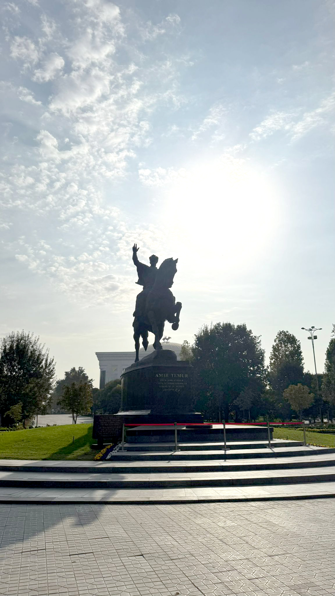 Yerimden kalktım, geldim ve devasa bronz heykelinin sembolünde Amir Timur’a tosladım — yani bizim tarih kitaplarımızda Aksak Timur’a, Timurlenk Han’a.