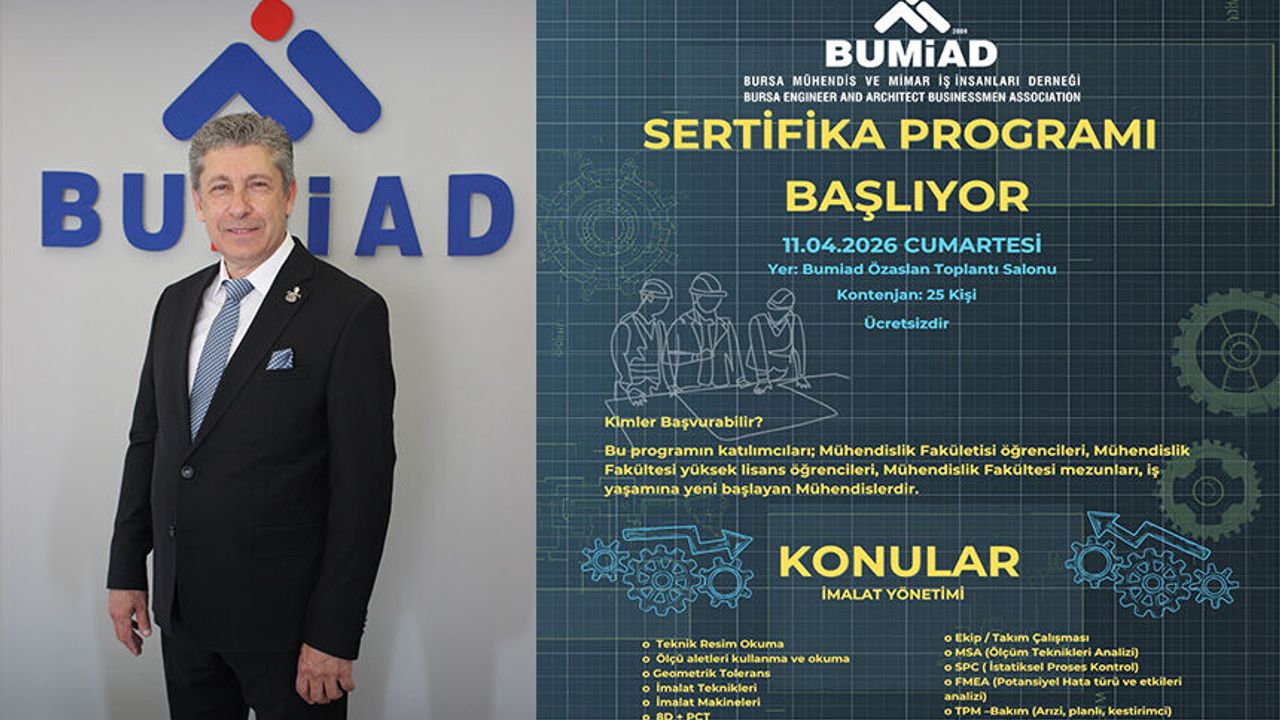Bursa Mühendis ve Mimar İş İnsanları Derneği (BUMİAD), mesleki deneyimin yeni kuşaklara aktarılması amacıyla önemli bir eğitim programını hayata geçiriyor. Mühendislik fakültelerinin son sınıf öğrencileri, yüksek lisans öğrencileri ve yeni mezun mühendisler ile iş yaşamına yeni başlayan mühendislere yönelik planlanan ‘İmalat Yönetimi’ seminerleri, deneyimli BUMİAD üyelerinin konuşmacı olarak katkılarıyla gerçekleştirilecek.