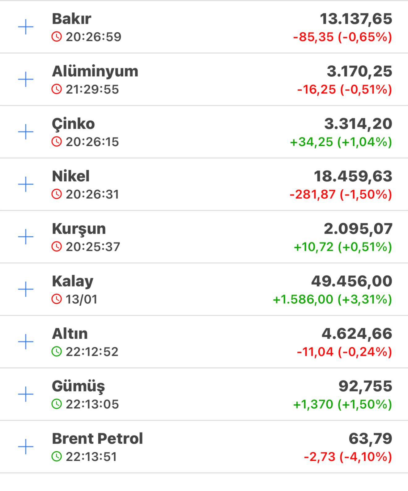 Ancak diğer metallerde karışık bir seyir izlenirken, çinko, kurşun ve kalay yükselişle dikkat çekti.