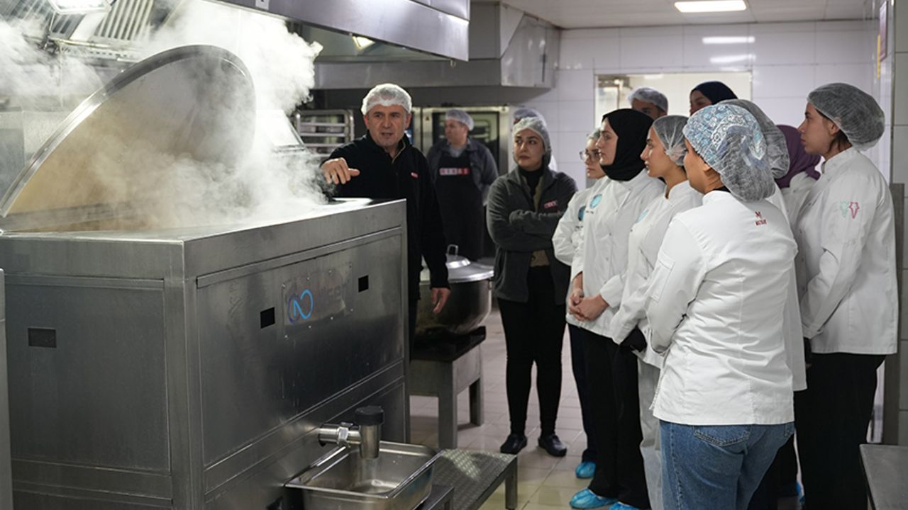 Ziyaret süresince MEKAŞ Koordinatör Aşçıbaşı Sinan Özdemir tarafından menü planlama, malzeme kabul ve depolama, üretim akış süreçleri, gıda güvenliği ve hijyen uygulamaları, HACCP standartları, ısı kontrolü ve porsiyonlama teknikleri gibi profesyonel mutfak yönetimine yönelik konularda detaylı bilgilendirme yapıldı. Öğrenciler ayrıca işletmede kullanılan modern mutfak ekipmanlarını yakından inceleyerek, sektörde yaygın olarak kullanılan üretim teknolojileri hakkında uygulamalı gözlem gerçekleştirdi. Teknik gezi, öğrencilerin toplu yemek üretim sektörünü yerinde tanımalarına olanak sağlayarak mesleki farkındalıklarını artırdı; teorik bilgilerini pratik uygulamalarla pekiştirmelerine katkı sundu. Aşçılık Programı öğretim görevlileri Fatih Yıldırım ile Erdoğan Bozan, bu tür teknik gezilerin öğrencilerin mesleki yetkinliklerini geliştirmede önemli bir rol oynadığını vurgulayarak, MEKAŞ Yemek Sanayi yöneticilerine sağladıkları katkı ve misafirperverlikleri için teşekkür etti. MEKAŞ Yemek Genel Müdür Yardımcısı Esra Kuyu Öztürk ise, sektöre nitelikli insan kaynağı kazandıran eğitim kurumlarıyla iş birliğine büyük önem verdiklerini belirterek, “Gençlerin mesleki gelişimlerine katkı sunmayı, sektöre bakış açılarını güçlendirmeyi ve onları gerçek üretim ortamlarıyla buluşturmayı kurumsal bir sorumluluk olarak görüyoruz. Üniversitelerle gerçekleştirilen bu tür iş birliklerinin artarak devam etmesini önemsiyoruz” ifadelerini kullandı.