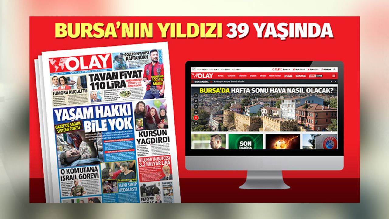 1987 yılında önceki dönem bakanlarımızdan Cavit Çağlar’ın kurmuş olduğu Olay Medya, 39’uncu yaşını kutluyor. Biz de Bursa basınının önemli kuruluşlarından olan Olay Medya’ya nice yıllar dileriz.