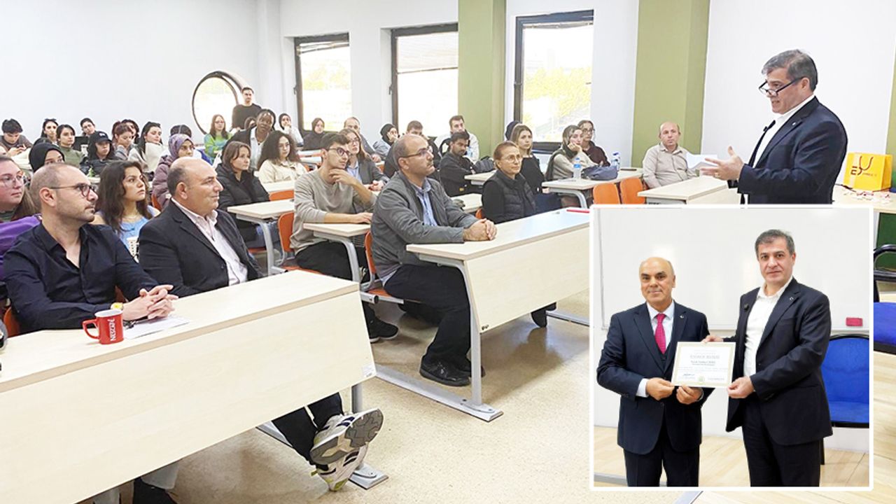 Türkay Eyrice, Kocaeli Üniversitesi Biyomedikal Mühendisliği Bölümü öğrencileriyle bir araya geldi. Eyrice, yaptığı konuşmada Türkiye’nin sağlık teknolojilerinde dışa bağımlılığı azaltması için yerli üretim ve Ar-Ge yatırımlarının kritik önemine dikkat çekti. “Üreten Türkiye hedefinde, yerli teknolojileri geliştiren, kendi cihazlarını tasarlayıp dünyaya satan genç mühendisler çok önemli bir rol üstlenecek” diyen Eyrice, biyomedikal mühendisliğinin insan yaşamına doğrudan dokunan stratejik bir alan olduğunu vurguladı. Sağlık teknolojilerinde yapay zekâ, biyomalzeme, protez tasarımı, medikal robotlar ve sensör teknolojilerinin geleceğin en stratejik alanlarını oluşturduğunu belirten Türkay Eyrice, şunları söyledi : “Tahminlere göre ülkemizde yaklaşık 20 bin farklı tıbbi cihaz ve sistem sağlık kurumlarında kullanılmakta. Ancak bu cihazların büyük bölümü hâlâ yurt dışından ithal ediliyor. İşte bu noktada sizlere, yani geleceğin biyomedikal mühendislerine çok önemli bir sorumluluk düşüyor. ‘Bu ülkenin kendi medikal cihazlarını üreten, kendi yazılımlarını geliştiren, kendi markalarını dünyaya taşıyan genç mühendislere ihtiyacı var. Türkiye, üreten ve ihraç eden bir medikal teknoloji ülkesi olma yolunda emin adımlarla ilerliyor. Bu vizyonu gerçeğe dönüştürecek olan sizlersiniz.”