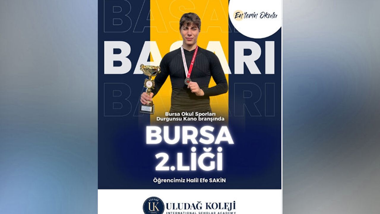 Bursa’da düzenlenen Okul Sporları Durgunsu Kano yarışlarında Uludağ Koleji öğrencisi Halil Efe Sakin önemli bir başarıya imza attı. K1 200 metre yarışında mücadele eden genç sporcu, genç erkekler kategorisinde Bursa 2.’si olarak kürsüye çıkma başarısı gösterdi. Azmi ve disiplinli çalışmasıyla dikkat çeken Halil Efe Sakin, elde ettiği dereceyle hem okulunu hem de antrenörlerini gururlandırdı. Uludağ Koleji yönetimi, başarılı öğrencilerini tebrik ederek başarılarının devamını diledi.