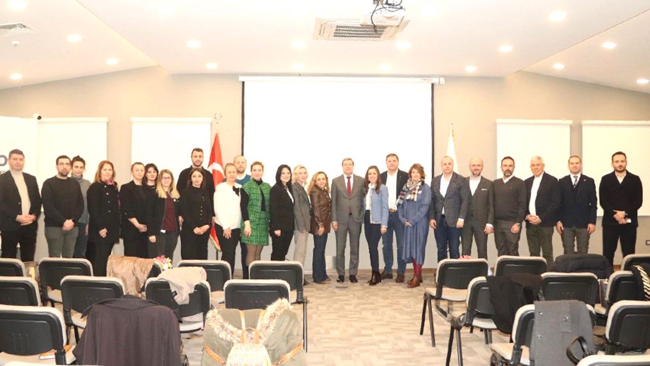 Programdan yararlanabilmek için izlenecek bürokratik ve finansal süreçlerin nasıl olacağıyla ilgili iş dünyasının danıştığı yetkili firma Mavi Yeşil Danışmanlık’ın Kurucusu ve Koordinatörü Makbule Çetin ile bu konuda Mavi Yeşil Danışmanlık ile iş birliği içinde olan Sachi Consultancy Kurucu Ortağı Senem Tanju’nun ortak sunumu, BALKANTÜRKSİAD üyelerince ilgiyle takip edildi. Programın açılışında konuşan BALKANTÜRKSİAD Akademi Başkanı Dr. Fatma Akalp, günümüz iş dünyasında sürdürülebilirlik kavramının firmaların hizmet ve üretim devamlılıklarında ‘olmazsa olmaz’ öneme sahip olduğunu vurguladı. Sürdürülebilirlik olgusunun firmaların Avrupa Yeşil Mutabakatı’na uyumunu zorunlu kıldığını ifade eden Dr. Akalp, gerçekleştirdikleri etkinlikle bu konuda üyelerini bilgilendirmeyi hedeflediklerini dile getirdi. BALKANTÜRKSİAD Başkanı İskender İskenderoğlu da Avrupa Yeşil Mutabakatı’na uyumun önemine dikkat çekerek, iş dünyasının uyum sürecine gereken hassasiyeti göstermesi gerektiğine işaret etti. Bu durumun firmaların geleceğiyle yakından ilgili olduğunu belirten İskenderoğlu, BALKANTÜRKSİAD olarak bu konuda üyelerinin bilgilendirilmesine özen gösterdiklerini vurguladı.